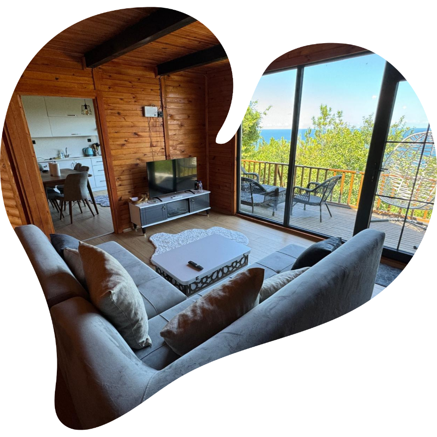 6 kişiye kadar konaklayabilirsiniz. Manzaraya karşı şömine eşliğinde keyifli vakitler geçirebilirsiniz. Birinci kat klima, TV, oturma grubu, şömine, mutfak, çocuk odası, duş. İkinci kat, 1 çift kişilik yatak, yatak odası dolabı, 2 berjer, balkon… Ve tüm odalarda klima bulunan odamız sizin rahatınız için tasarlandı. Hemen Rezervasyon oluşturun tatil planınızı yapın.